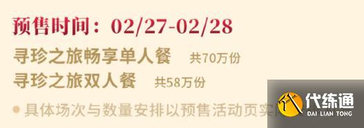 由于本次活动的实体周边只能通过寻珍之旅畅享单人餐和寻珍之旅双人餐获得,因此玩家只能在第一批预售中购买对应套餐。