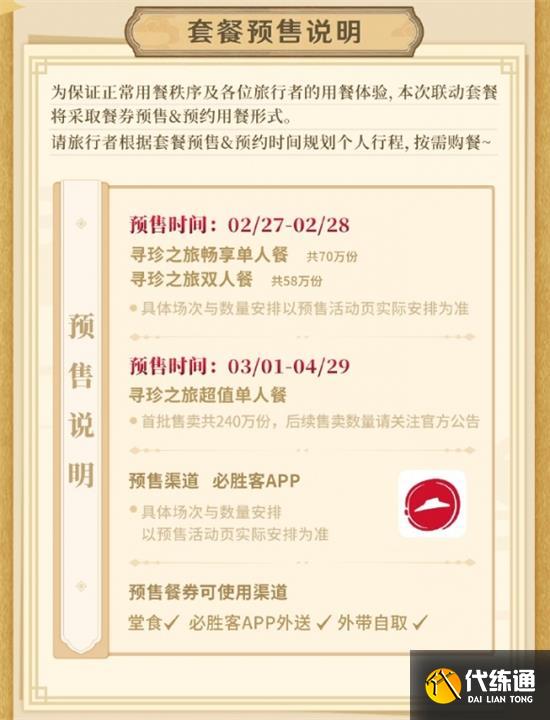 1、本次联动套餐预售在2月27日开启,正式的联动时间是在4月3日上线。