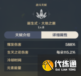 在前方造成大范围岩元素伤害。若在拟造阳华范围内释放,则会伴随着七次生灭之花的绽放伤害(在阳华范围内炸七次,爆炸位置分散,并不是定位敌人爆炸)冷却时间12秒,需要元素能量40