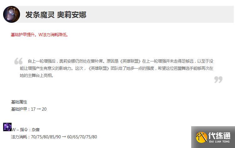 基础护甲提升。W法力消耗降低。