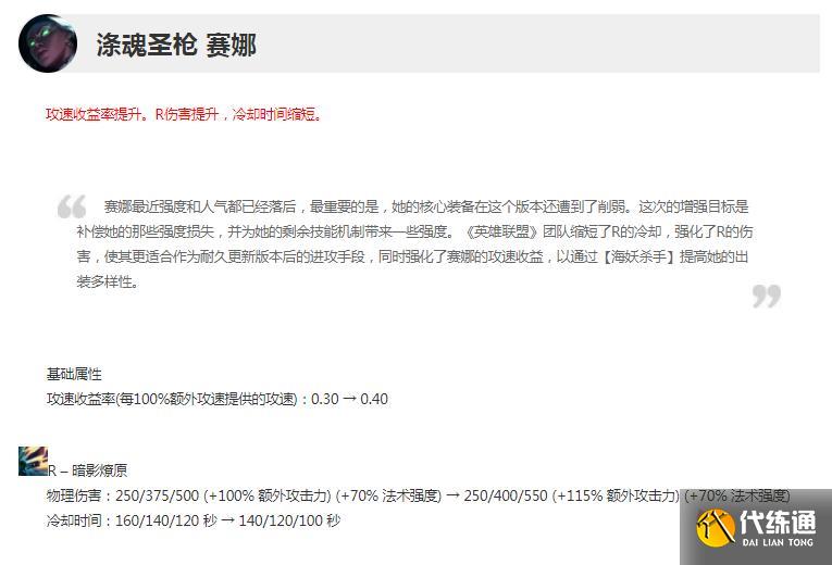 攻速收益率提升。R伤害提升,冷却时间缩短。
