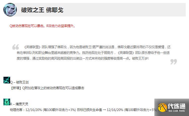 Q被动伤害现在可以暴击。R攻击力收益率提升。