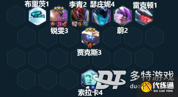 阵容组成:布里茨、锐雯、李青、瑟庄妮、蔚、雷克顿、贾克斯、索拉卡