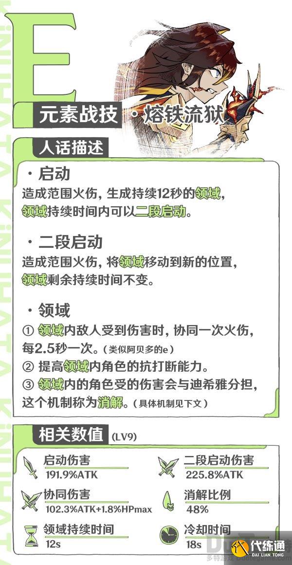 ② 每次协同攻击都能造成一次独立弱火元素附着,且必定后手附着,触发元素反应吃迪希雅的精通。