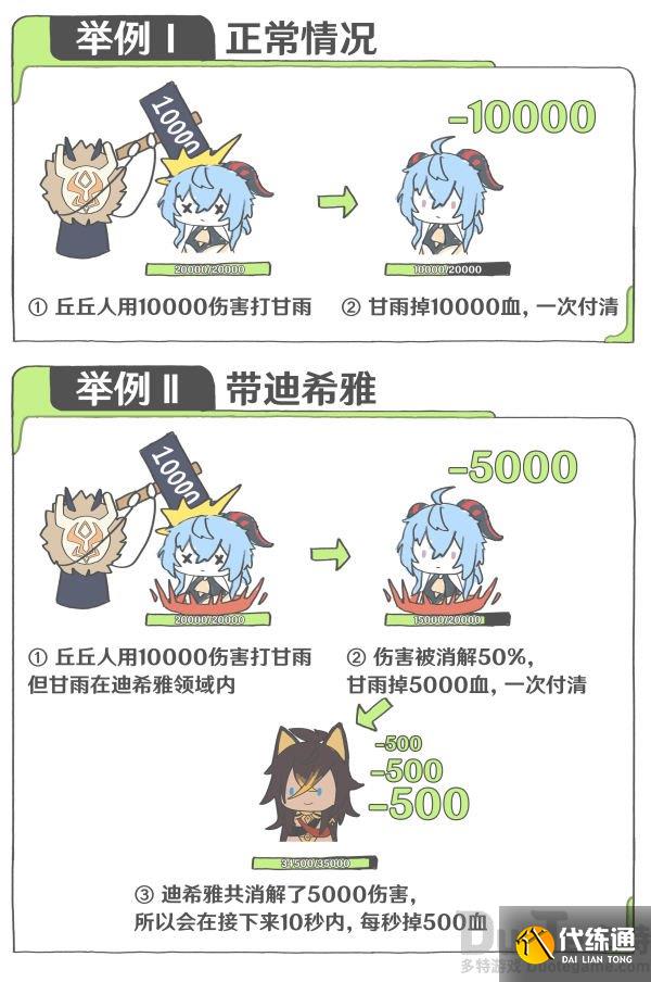 ③ 消解与减伤可以叠加,先减伤,再消解,前台角色最终受伤=原伤害*(1-减伤)*(1-消解)