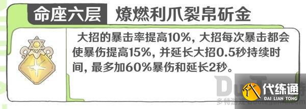 其中辅助能力在2命已经完善,1、4、6都在为大招服务,2命以上的综合性价比就不高了,可以等常驻慢慢歪。