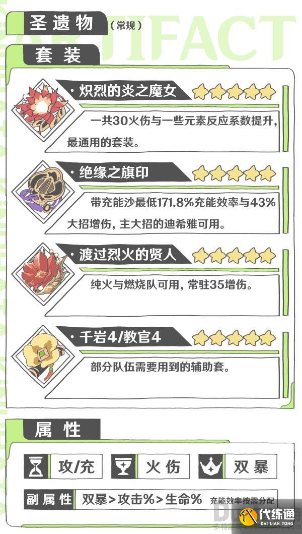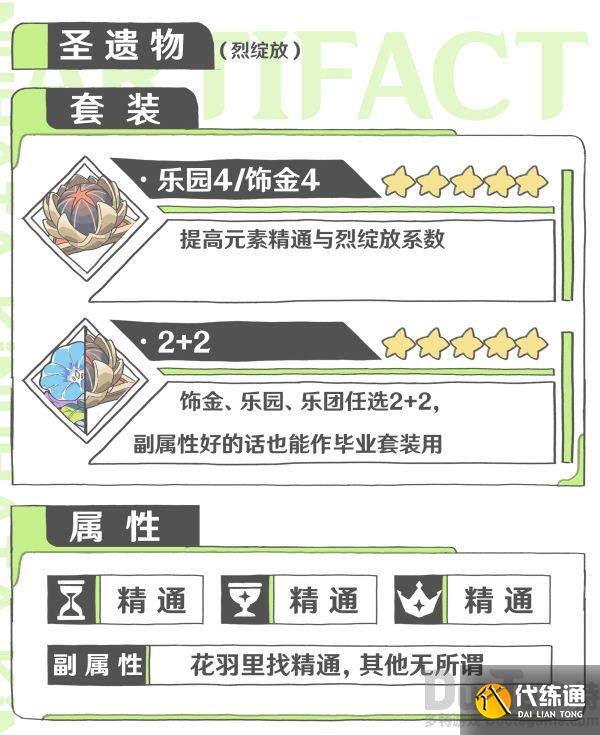 以上是输出或辅助向迪希雅的圣遗物配置,如果你的迪希雅是当烈绽放的打火机,那么配装方案可以改为这样: