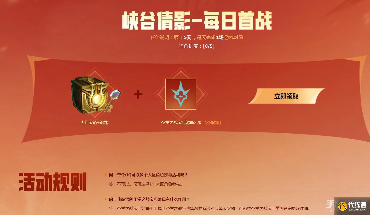 从2023年3月2日开始,玩家完成活动对应任务,即可免费领取圣堂之战宝典能量,并获得对应的宝典能量奖励。