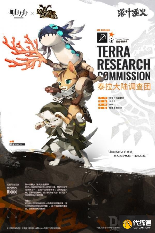 明日方舟期待已久的怪猎联动的新干员情报正式公开和透露,这次优先介绍的是一星的投掷手狙击干员泰拉大陆调查团,也就是三只小猫,具体说说这位新干员的特色,是非常特别和另类的,没有技能只有天赋的吉祥物。