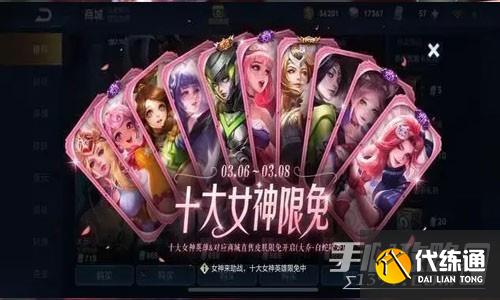 1、皮肤限免活动时间:3月6日~3月9日,期间一共有10款女英雄皮肤开启限免;