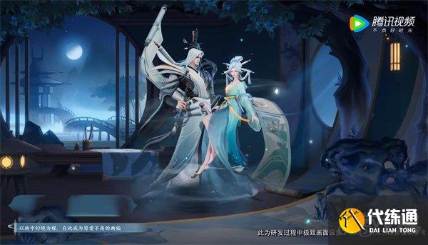 以水墨国画中常见的山水、鱼鸟为主要元素进行设计,突出干将莫邪亲密无间的默契配合,特效设计丰富了技能轨迹、受击反馈、控制消散等视效,行走动作更是莫邪首次行走特效展示,此外,待机和回城都展现了干将莫邪相处的甜蜜点滴。