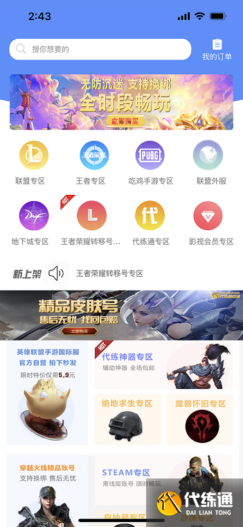 相信不少代练大神们都听说过代练通这款游戏交易平台。随着游戏的发展,代练通的游戏交易服务不仅仅限于游戏账号、道具、金币的交易,代练也是代练通旗下服务类型的一种。