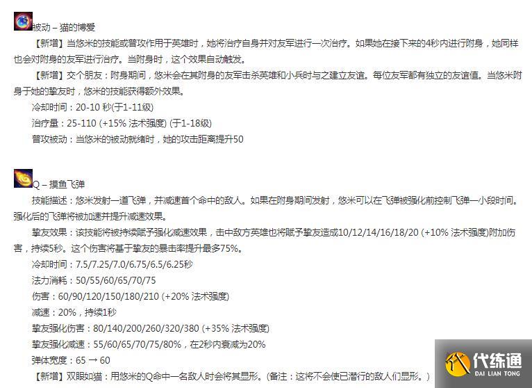 【新增】交个朋友:附身期间,悠米会在其附身的友军击杀英雄和小兵时与之建立友谊。每位友军都有独立的友谊值。当悠米附身于她的挚友时,悠米的技能获得额外效果。