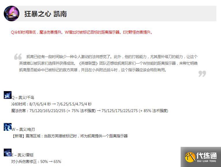 游戏《英雄联盟》上线了13.5版本,在该版本中设计师针对凯南进行了加强。一些玩家不知道13.5版本正式服凯南加强了什么,小编给大家收集LOL13.5版本正式服凯南加强一览,希望能帮到大家。