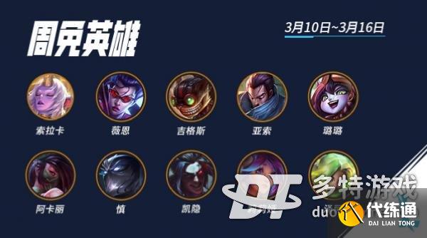 英雄联盟手游本周周免英雄是谁 英雄联盟手游0310-0316周免英雄介绍