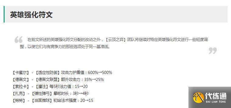 游戏《云顶之弈》上线了13.5版本。一些玩家不知道13.5版本正式服英雄强化符文改动了什么,小编给大家收集LOL13.5版本正式服英雄强化符文改动一览,希望能帮到大家。