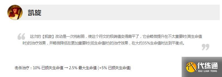 击杀治疗:10% 已损失生命值 → 2.5% 最大生命值 (+5% 已损失生命值)