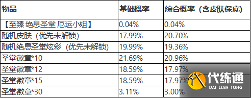 当召唤师获取奖池内全部炫彩后,对应的概率将分配至圣堂徽章奖池。