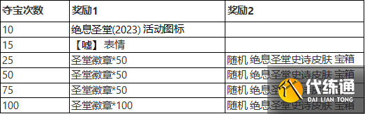 参与圣堂夺宝(包括免费次数)达到指定次数,可额外获得奖励。奖励内容如下: