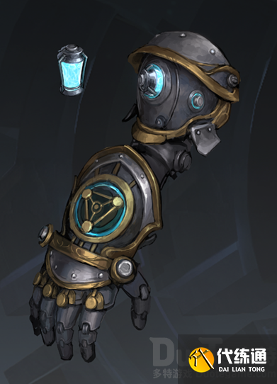 狂铁曾因向“筑城者”米莱狄挑战而失去右臂,只能装上由机关打造的手臂。在重遇自己的好兄弟火鹰船长莱西奥后,擅长机械技术的莱西奥为狂铁重新修缮了机械臂,让它更为活动灵敏、坚固有力。机械臂嵌入海荧石制成的能量罐,能进一步放大狂铁自身的生物电能力。