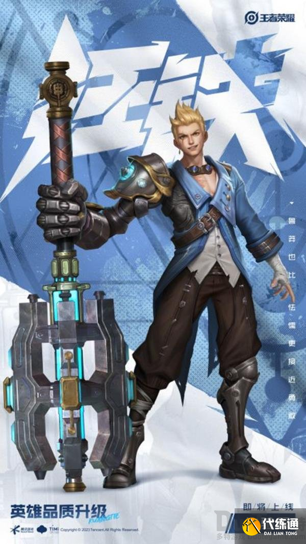 狂铁的巨锤在使用过程中会产生强大电流,还能激活重击、屏障等一系列秘术功能。为了与狂铁的能力更匹配,品质升级后的大招,在原有基础上加入了更深层次的表现——狂铁将武器砸向地面后,除了原有的效果外,将额外制造一道电弧,对敌方造成伤害,并且从接触到的敌方英雄身上获取移速。让狂铁拥有更灵活的行动能力,应付多种战斗场景。