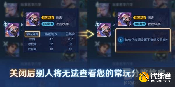 我们将“常用职业信息”优化为“常玩分路信息”,方便大家更准确地识别队友擅长的位置。