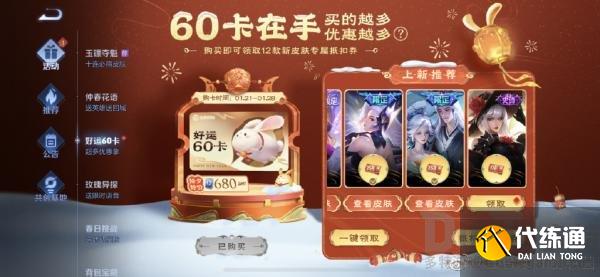 此外,持有好运60卡玩家可领178点券皮肤专属优惠卡,享受首周532专属优惠价。