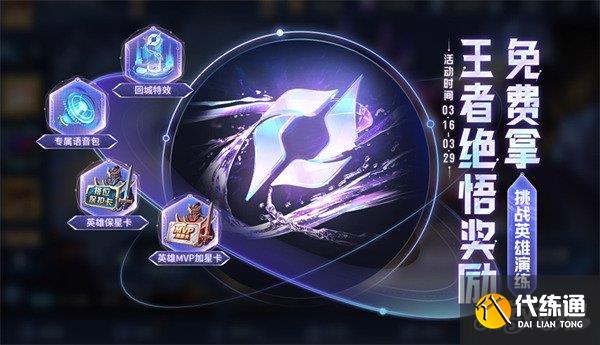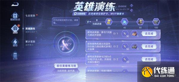 活动规则:选择英雄,完成任务累积演练积分即可获得英雄排位保护卡、英雄MVP加星卡、王者绝悟回城特效、英雄碎片等奖励