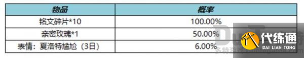 皮肤特权红包:打开后必得铭文碎片*10,有概率额外获得以下奖励:亲密玫瑰*1、动态表情-夏洛特尴尬(3天)(红包3月31日23:59过期)