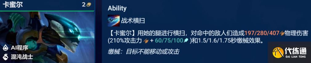 卡蜜尔在季中赛季变化不大,但强度依旧,这套阵容卡蜜尔开局做飞机直打敌方后排C位,非常克制后排C位的阵容。