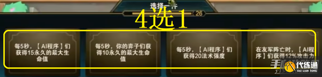 季中赛季AI程序与混沌羁绊都小幅度更改,AI程序变化最大的就是选择程序效果时从3选1变为4选1,现在获得增加攻击力收益的程序会更容易。
