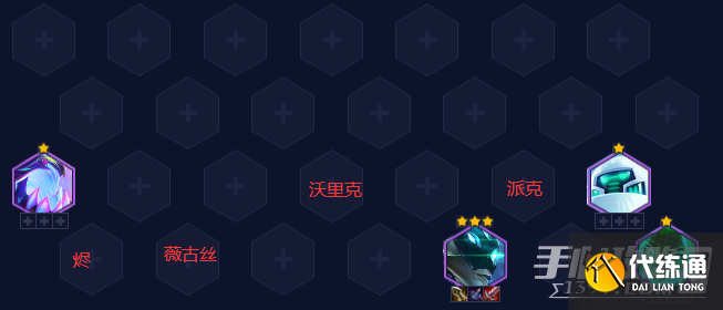 卡蜜尔三星后升8人口,添加慎开3黑客。能上9人口就添加蕾欧娜开3混沌,扎克站派克旁边开4黑客。