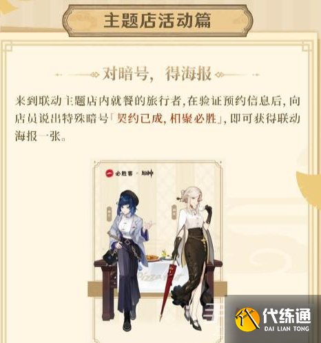 2、在4月3日——4月30日活动期间,前往联动主题店中购买套餐的玩家,可以向店员说出以上口号,可以额外获得联动海报奖励;