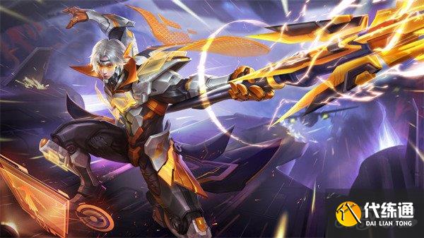 整体以黑色和灰白为基底,嵌入金黄、橙黄的亮眼色彩装饰,大气又华丽,行走间铠甲闪闪发光,披风、武器的虚影化呈现,使皮肤科技感更强,银白点缀的护目镜充满未来感,领口敞开和扩宽肩甲的设计都让铠甲整体更有质感。