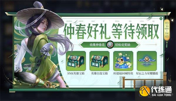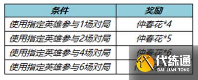 活动期间使用指定英雄参与对局送仲春花!(仲春花可在月历商店中兑换英雄自选宝箱和限时语音等奖励)