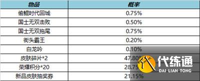皮肤碎片&积分自选礼盒:打开礼包可任意选择以下奖励之一:荣耀积分*10或皮肤碎片*1