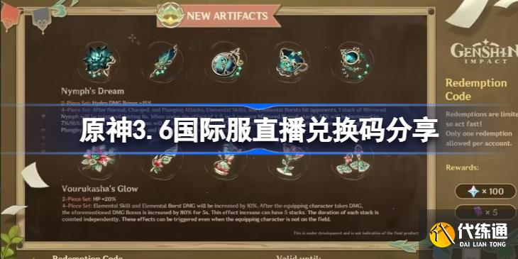 原神3.6国际服直播兑换码分享 原神3.6国际服直播兑换码有哪些