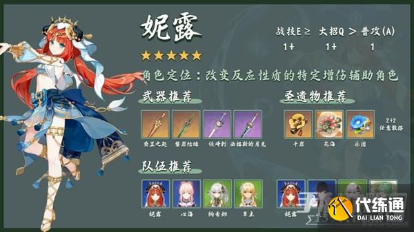 所以目前妮露的主要配队就是围绕着水草绽放反应进行搭配,对群优秀,对单差些。