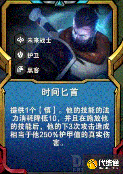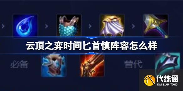 这套阵容必备慎的专属时间匕首,只建议在3-2拿到的时候考虑这套阵容,在4-2,装备不太容易成型,转型也比较难。