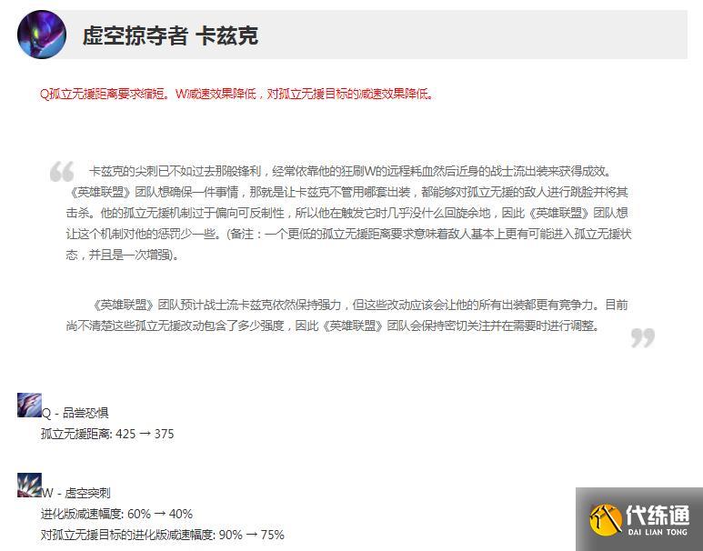 Q孤立无援距离要求缩短。W减速效果降低,对孤立无援目标的减速效果降低。