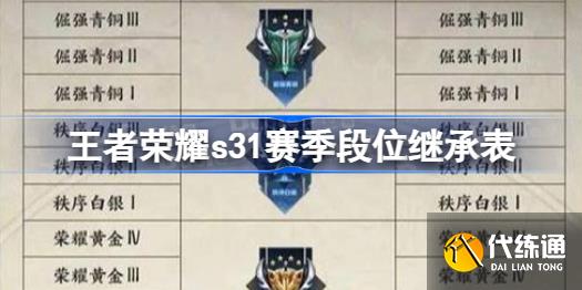 王者荣耀s31赛季段位继承表 s31赛季段位继承规则介绍