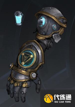 狂铁曾因向“筑城者”米莱狄挑战而失去右臂,只能装上由机关打造的手臂。在重遇自己的好兄弟火鹰船长莱西奥后,擅长机械技术的莱西奥为狂铁重新修缮了机械臂,让它更为活动灵敏、坚固有力。机械臂嵌入海荧石制成的能量罐,能进一步放大狂铁自身的生物电能力。