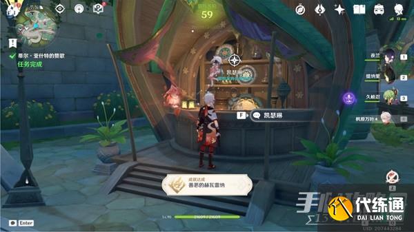 传送须弥城,与凯瑟琳对话结束,完成任务 「蒂尔·亚什特的赞歌」,获得成就 「善恶的赫瓦雷纳」