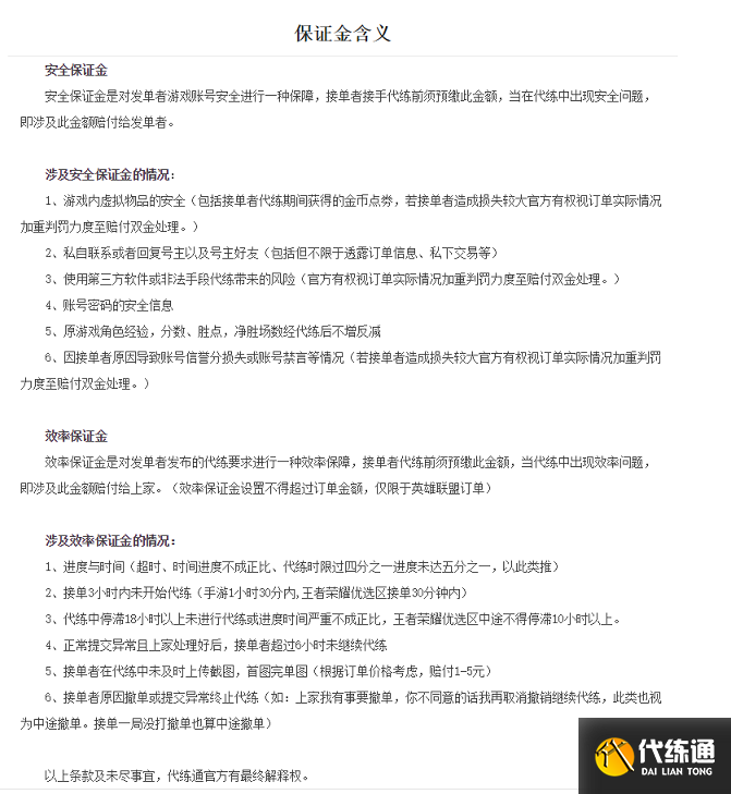 代练通游戏交易平台。作为一个正规的交易平台,对代练的要求也是很严格的,为了避免伪代行为,订单可设置保证金额,如果代练达不到要求是需要赔付的,所以代练们也不敢随随便便就接手订单,只有对订单很有信心的代练才会接手。其次平台内为了代练的权益,也设置了发单者找代练需要冻结代练费用在平台,订单结算后直接打入代练的账户里,这对代练一方也是一个很好的保护。严格的制度自然会带来良好的用户口碑,所以在代练通游戏交易平台中不用担心接不到单子,只要辛苦付出,就一定会有收获。