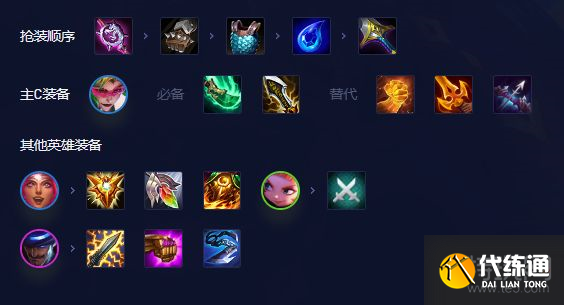 其他装备就不要等有啥合成啥,多余法强装备给崔斯特,多余坦度装备给菲奥娜或尼菈。