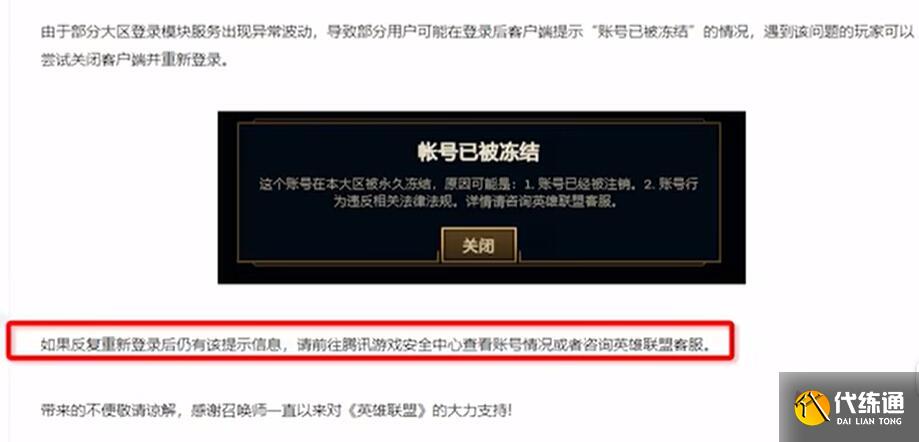 16日下午,英雄联盟在官网发布公告称部分大区登录模块服务出现异常波动,导致部分用户可能在登录后客户端提示“账号已被冻结”的情况。