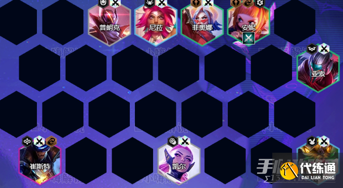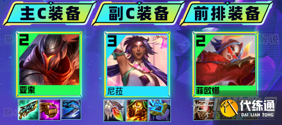 4阶段:4-1/4-2阶段大搜3星亚索>菲奥娜,亚索3星就可以拉7人口,顺便拿一下尼菈这个英雄,如果有2个2星尼菈,那么7人口可以继续上一个尼菈增加前排坦度。