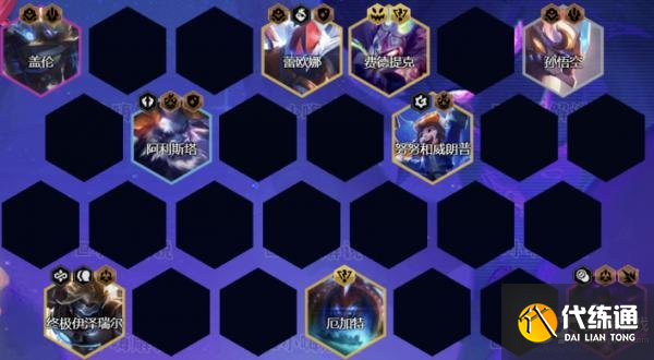 阵容组成:孙悟空、阿利斯塔、莎弥拉、费德提克、蕾欧娜、厄加特、盖伦、终极伊泽瑞尔、厄加特、努努