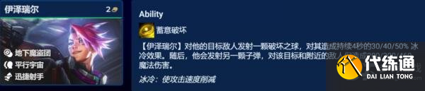 这是一套纯暴力输出阵容,可以说阵容全员都是在为伊泽瑞尔服务。伊泽瑞尔技能可造成群体高魔法伤害,且还能降低敌方被伊泽瑞尔技能碰到的棋子攻速,输出与软控强度一流。