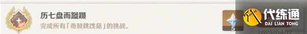 由谱子看出顺序为平a,不打,平a,不打,平a,不打,平a,不打,完成后获得一个精致宝箱,向后转开启限时挑战,接着按谱子跳蘑菇,只有第1,3,5,7个蘑菇要跳,2,4,6,8个蘑菇不跳 ,完成后获得一个精致宝箱,三个都完成还会解锁一个华丽宝箱以及成就:厉七盘而蹝蹑。